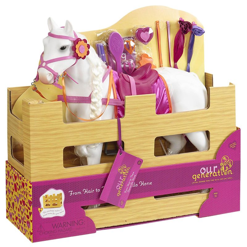 Harness equestrian fun and practice your beauty salon skills with the Camarillo Hairplay Horse from Our Generation!