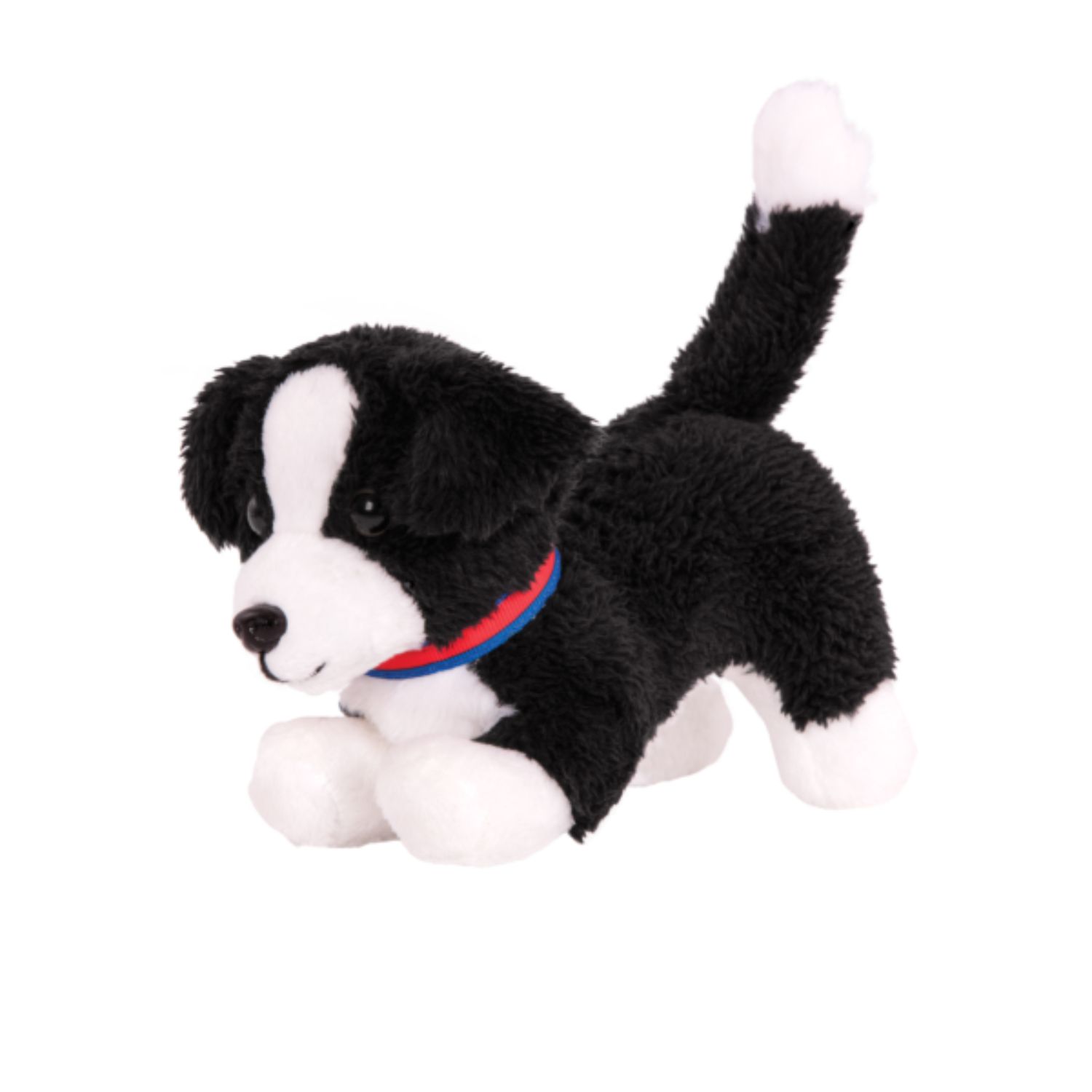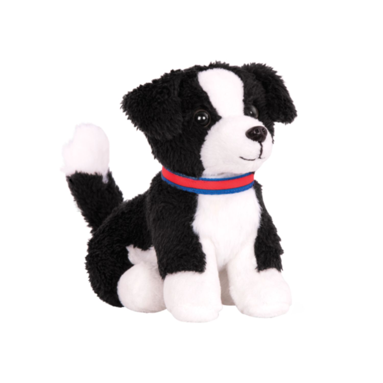 Travel, snuggle, and embark on fun adventures with the 6-inch Our Generation Posable Border Collie!This plush dog has posable legs, so your pup can learn to sit, lie down, and shake a paw! Is it time for a trip?Clip the attachable leash to the collar and explore the neighborhood to meet more friendly pals!This lovable pet companion has super soft black and white plush fur, and it’s just the right size to teach your dolls how to care for their puppy.